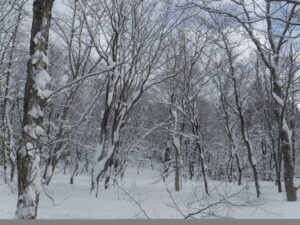 スノーシューはいても40㎝は沈む(体重のせいかな?)この深雪では、当然動物の足跡もなく、鳥の声も