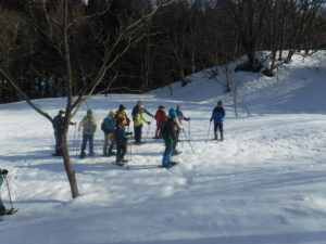 前回まで週末寒波到来で、寒く新雪が多く積もり歩くルート選択が厳しかったけど、今日は天気が良くて、最高のスノーシュー日和でした。
