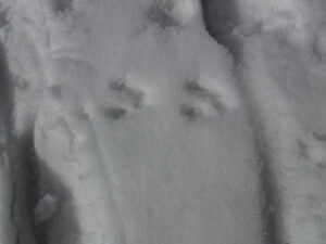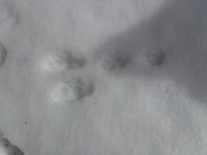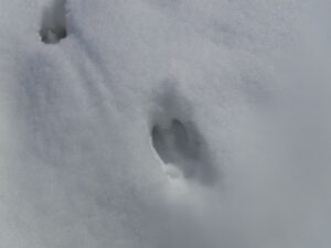 ビジター周辺の残雪では、道を歩くのが精いっぱいで、どこでも歩ける?という残雪の量ではなくなったので、今日は月山高原牧場の方へちょっと遠征です。牧場付近でもいつもの時期と比べると1mぐらい少なく、雪もざぶざぶで歩くずらく、でも動物たちは、懸命にこの冬を乗り越えて、あちこちに足跡を残していました。イノシシの足跡がある近くには必ず沢(餌場)が空いて水が流れているところを歩いてるので、事前に危険個所を察知することができます。今頃気づきました。
