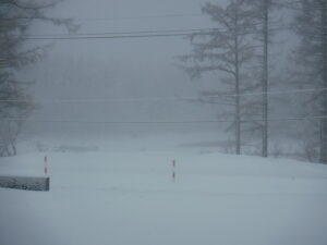 今週末、「初歩のスノーシュー」イベントあるけど、この調子で吹雪かれると雪の上すいすいと歩けるかな~。ちょっと心配。